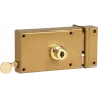 1-point wall-mounted lock with box and keeper in 25 / 10th gold-colored cambered steel.