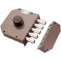 Serrure 3 points, simple pompe, à bouton intérieur.